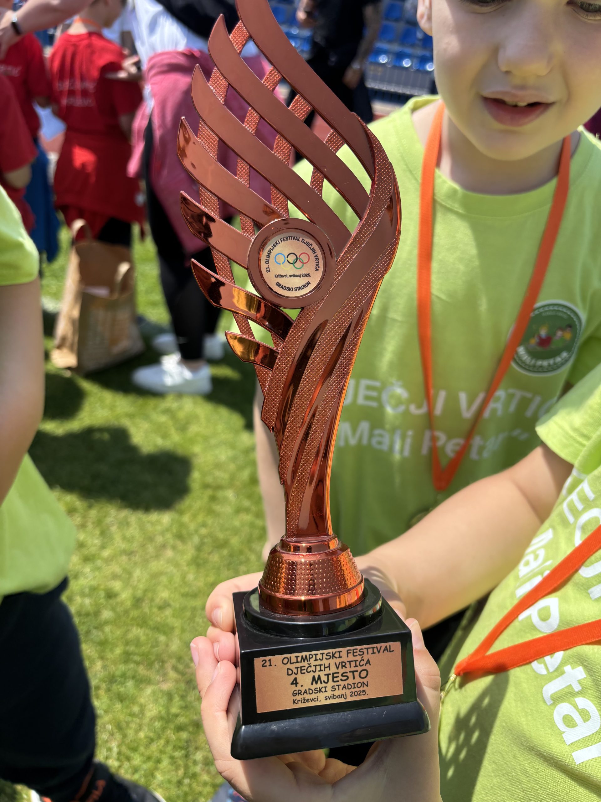 U utorak, 20. svibnja predškolci Dječjeg vrtića Mali Petar sudjelovali su na 21. Olimpijskom festivalu dječjih vrtića Republike Hrvatske koji je održan na Gradskom stadionu u Križevcima. Mali sportaši iz osam (8) dječjih vrtića s područja Križevaca i okolice natjecali su se u sportskom duhu i veselju. Nakon svečanog mimohoda, podizanja zastave, pozdravnog govora gradonačelnika i paljenja olimpijske vatre, djeca su se natjecala u raznim atletskim disciplinama – trčanju, štafetama, bacanju loptice i skoku u dalj te u nogometu. Na kraju ćemo spomenuti kako su naši predškolci osvojili izvrsno 4. mjesto u konkurenciji osam (8) vrtića, a posebno smo ponosni na činjenicu da je osvojeno 1. mjesto u nogometu!