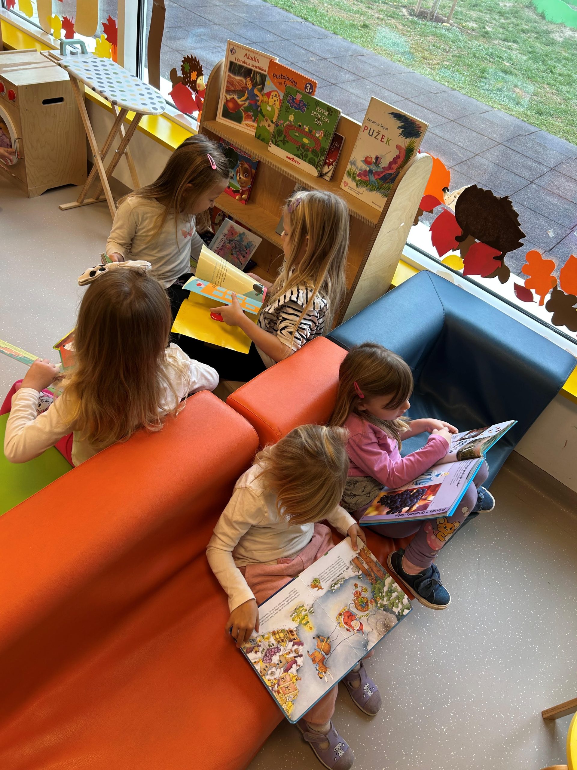Djeca su u vrtić donijela svoje omiljene slikovnice, te su zajedno s odgojiteljicama uredila vlastitu “vrtićku knjižnicu” u sobi dnevnog boravka. Police su se ubrzo ispunile raznobojnim koricama i zanimljivim pričama koje su svi s veseljem listali i čitali.