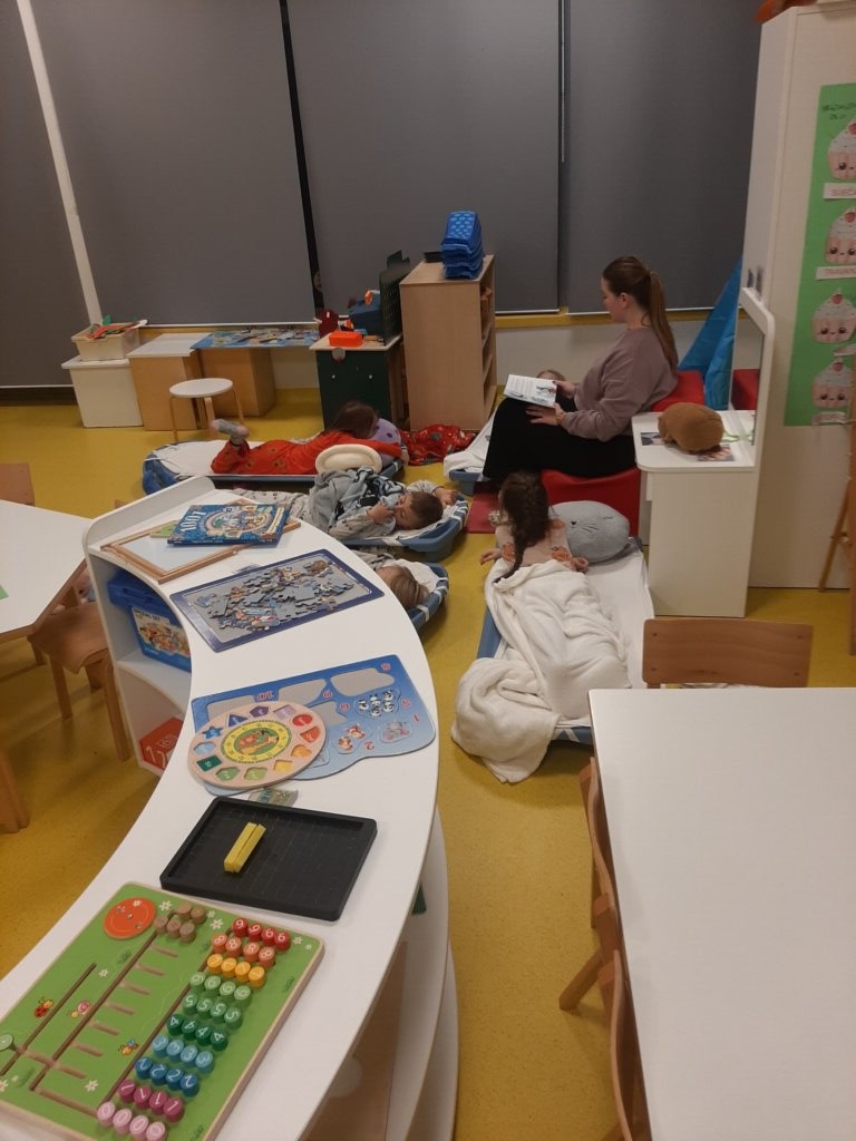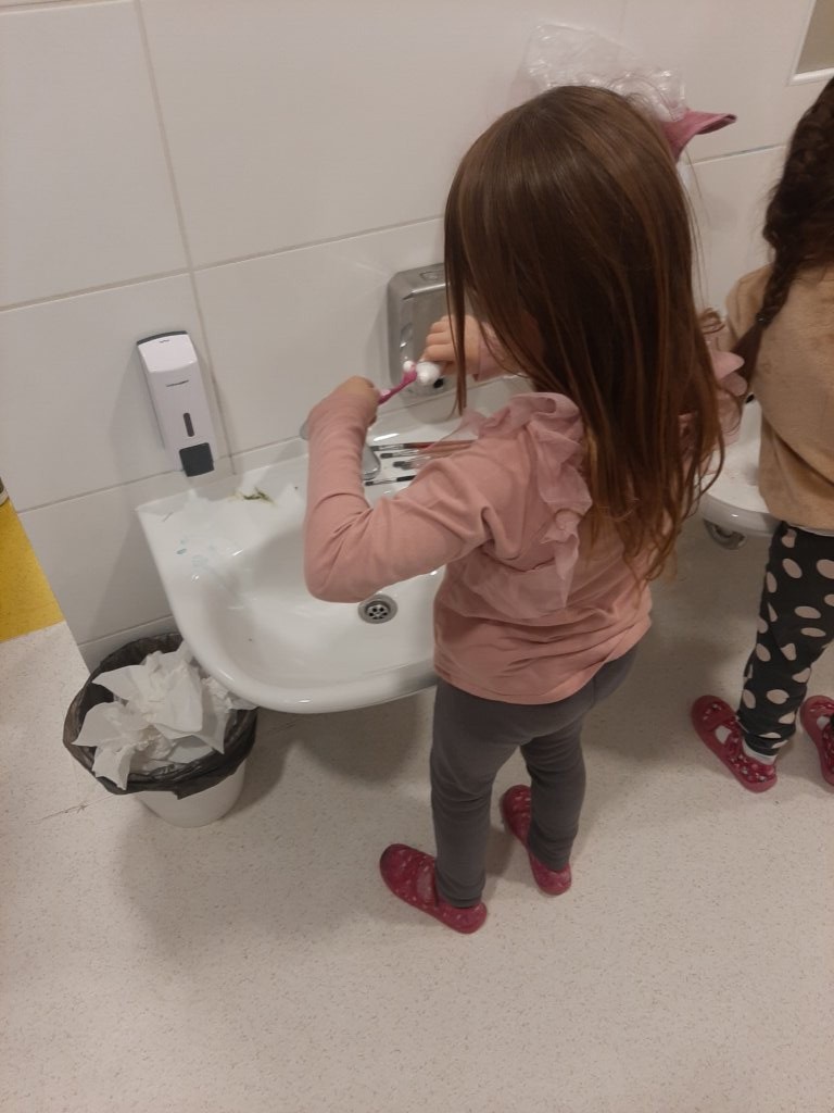 Završetkom tematskih aktivnosti došlo je vrijeme i na onu zbog koje su djeca nestrpljivo čekala noć – spavanje. Prije samog odlaska na spavanja djeca su pažljivo oprala zubiće, veselo obukla pidžame i mirno legla u krevetiće čekajući da im odgojiteljice pročitaju priču koja će im pomoći da utonu u miran i duboki san.