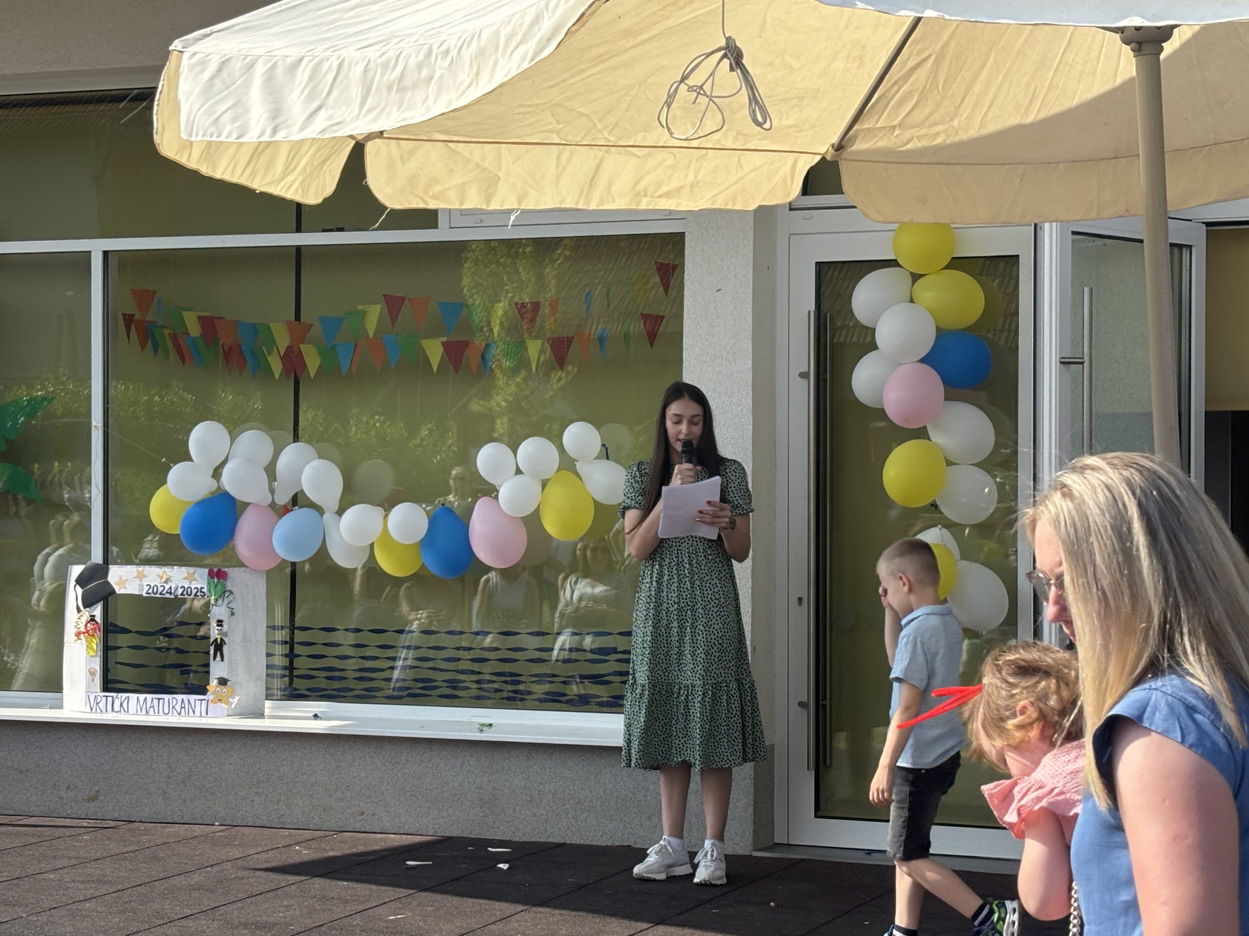 Jedan od najemotivnijih trenutaka bio je oproštaj predškolaca, koji su se, odjeveni u posebne kapice i s diplomama u rukama, oprostili od svojih mlađih prijatelja, teta i prostora koji je za njih bio drugi dom. Bilo je i suza, ali i puno osmijeha, zagrljaja i riječi ohrabrenja za sve ono što ih čeka u osnovnoj školi.